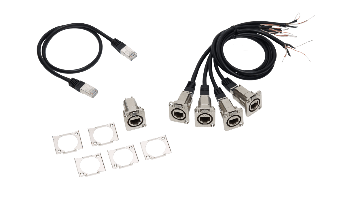 Adapter cable set for grandMA3 4Port Node DIN-Rail, DMX via RJ45 (4x cable DMX/RJ45 (length 0.5m), 1x cable RJ45, 1x built-in socket etherCON/RJ45 to RJ45)